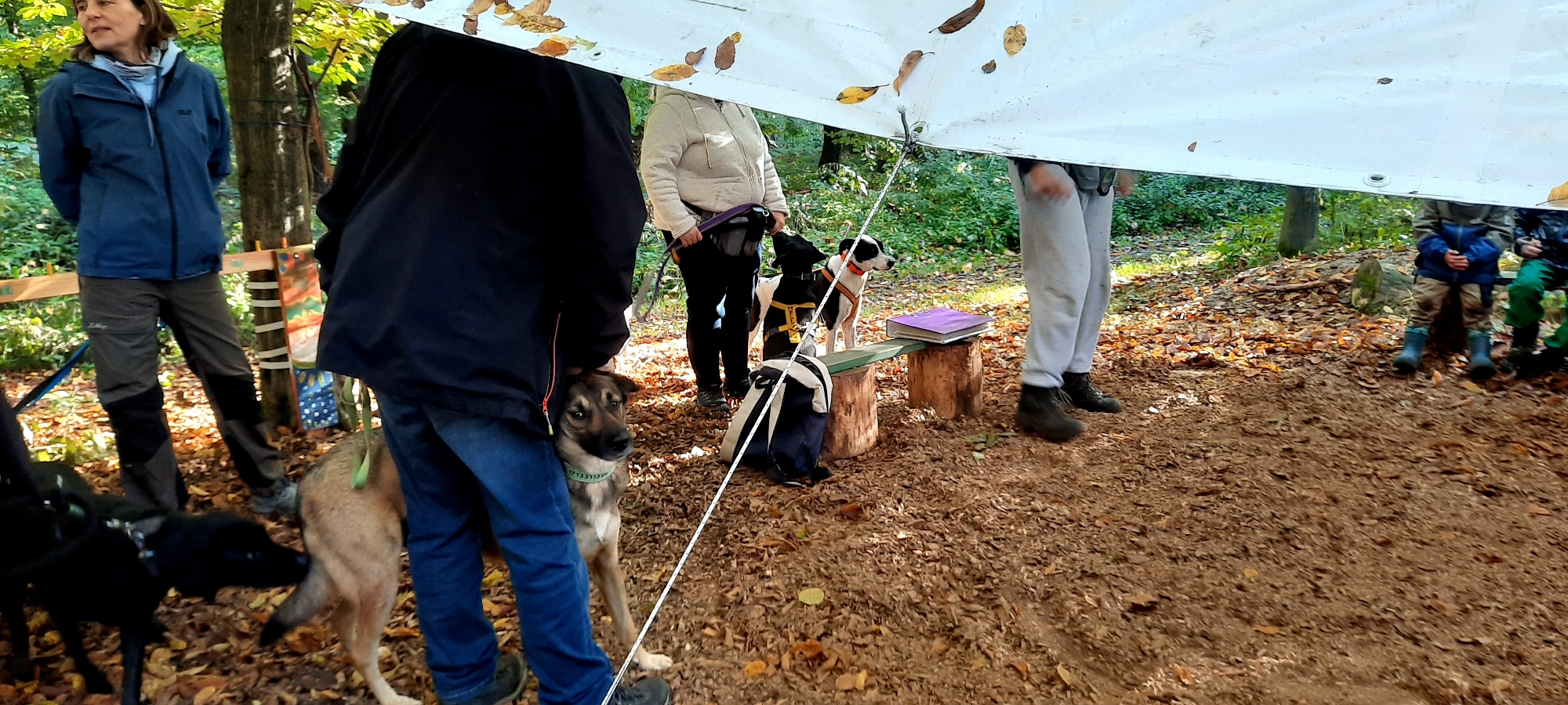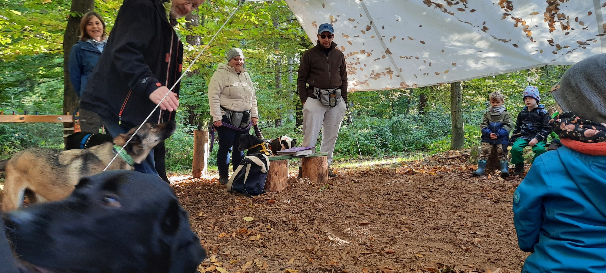 Viele unserer Hunde lieben es, Kinder um sich herum zu haben. Umso schöner für uns alle, dass wir immer mal wieder in Kindergärten und Grundschulen eingeladen werden. Und hin und wieder ergeben sich sogar Spontanbesuche wie der beim Waldprojekt eines Kindergartens aus der Umgebung: